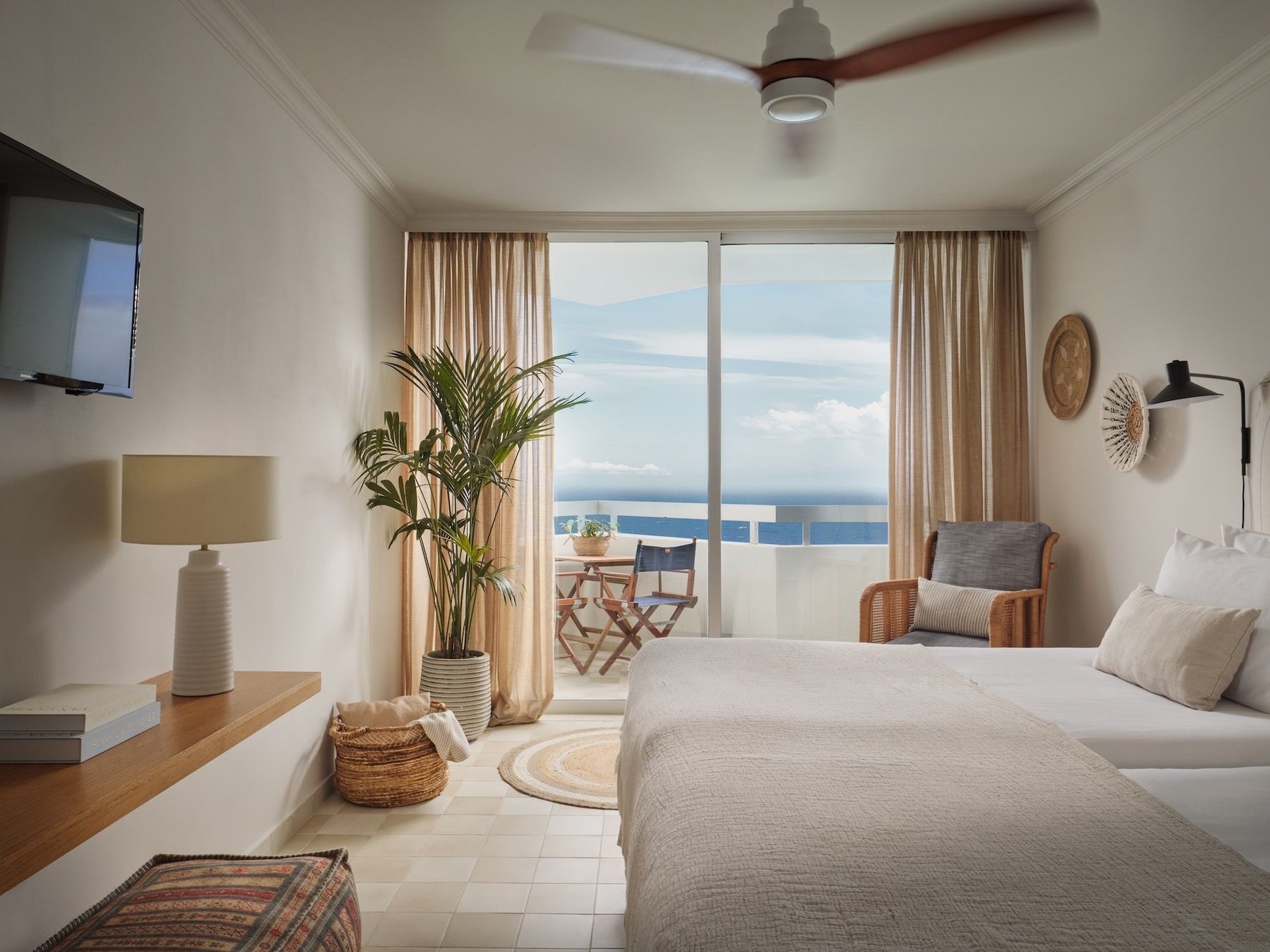 Decorated in light colors, the Standard Room with sea view offers breathtaking, unobstructed views of the Atlantic ocean, perfect for a relaxing and rejuvenating getaway.